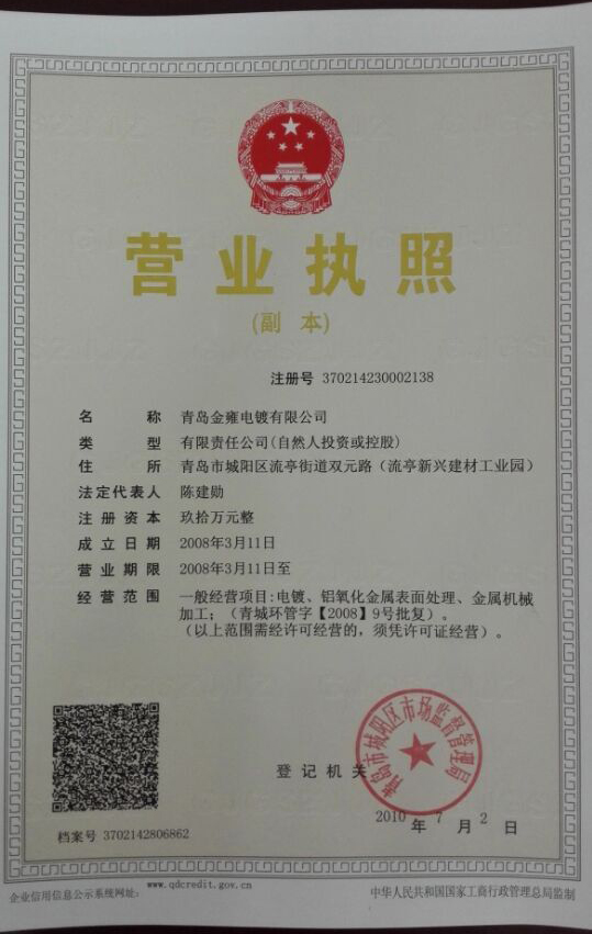 您好!歡迎來到青島金雍電鍍有限公司網站!
